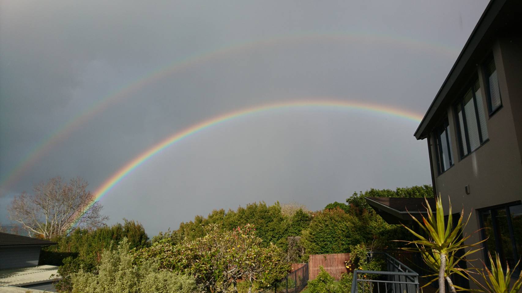 雨の合間のダブルレインボー🌈