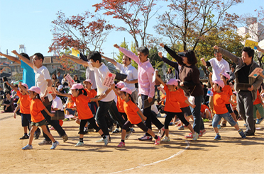 運動会はとっても楽しい。 どの子もいきいきと力いっぱい 楽しみます。