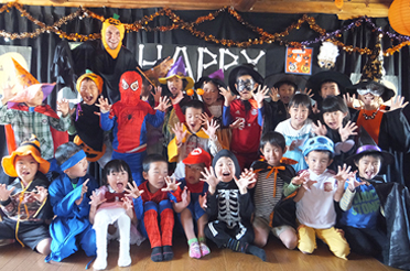 4・5歳児は、週に一度英語のレッスンを受けています。 英語の先生は、子どもライブラリーの職員。普段から子ども達と遊び、一緒にご飯を食べ、お世話をし、いっしょに過ごしています。その延長での英語のレッスンは、ひとりひとりの子どものことをよくわかり、信頼関係のもとに行われています。 ハロウィンの時期には、毎年、「ハロウィンパーティ・レッスン」子ども達もとっても楽しみにしています。