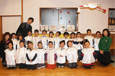 クリスマスには、保護者の方を招待して「あったかクリスマス」を。夕方から、園舎の中で、子ども達の可愛い歌を聞いたり、静かにストーリーテーリングを楽しんだり。すっかり日が暮れたころには、5歳児の子ども達が聖歌隊で賛美歌を歌い、ハンドベルを聞かせてくれます。